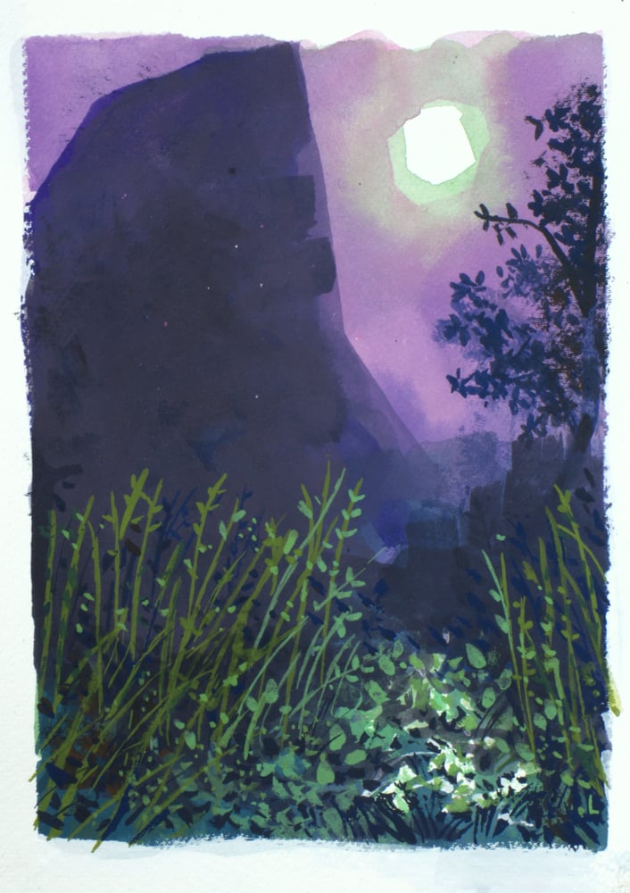 Gouache on 140lb watercolor paper, paper size approx. 5" x 7". Signed with an L. See Store Policies for additional information.