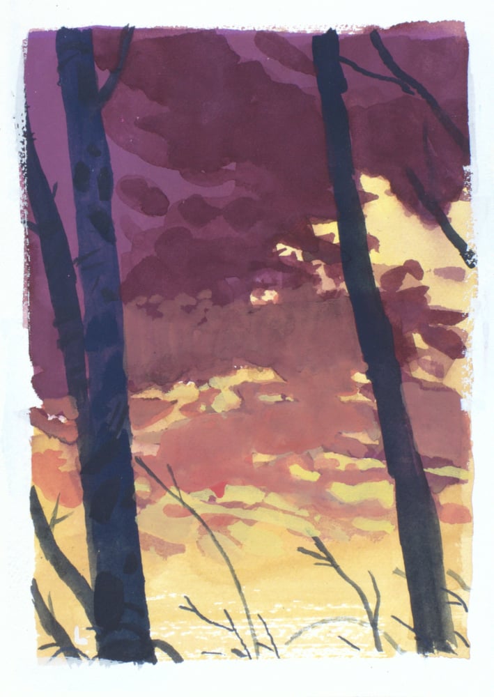 Gouache on 140lb watercolor paper, paper size approx. 5" x 7". Signed with an L. See Store Policies for additional information.
